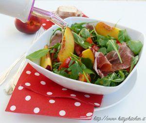 Insalata di pomodori e pesche con prosciutto