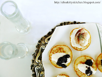 BLINIS CON CREME FRAICHE ARINGA E LEMON GRASS